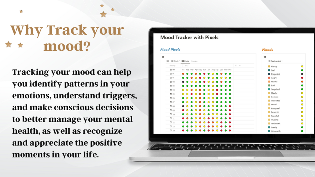 Tracking your mood can provide you with valuable insights that can help you better understand your emotions and how your behavior is affected by them. It can help you identify the triggers that lead to certain moods, and the factors that influence them. Keeping track of your moods is also a great way to recognize and appreciate the positive moments in life, and to take action to find healthier ways of managing mental health.